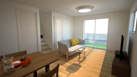 新築・戸建て・3LDK☆人気のカウンターキッチン♪ガスコンロ付システムキッチン!ウォークインクローゼット付きで収納充実☆1F・2F共にトイレ付です♪駐2台分家賃込み☆「外観・室内写真はイメージです」